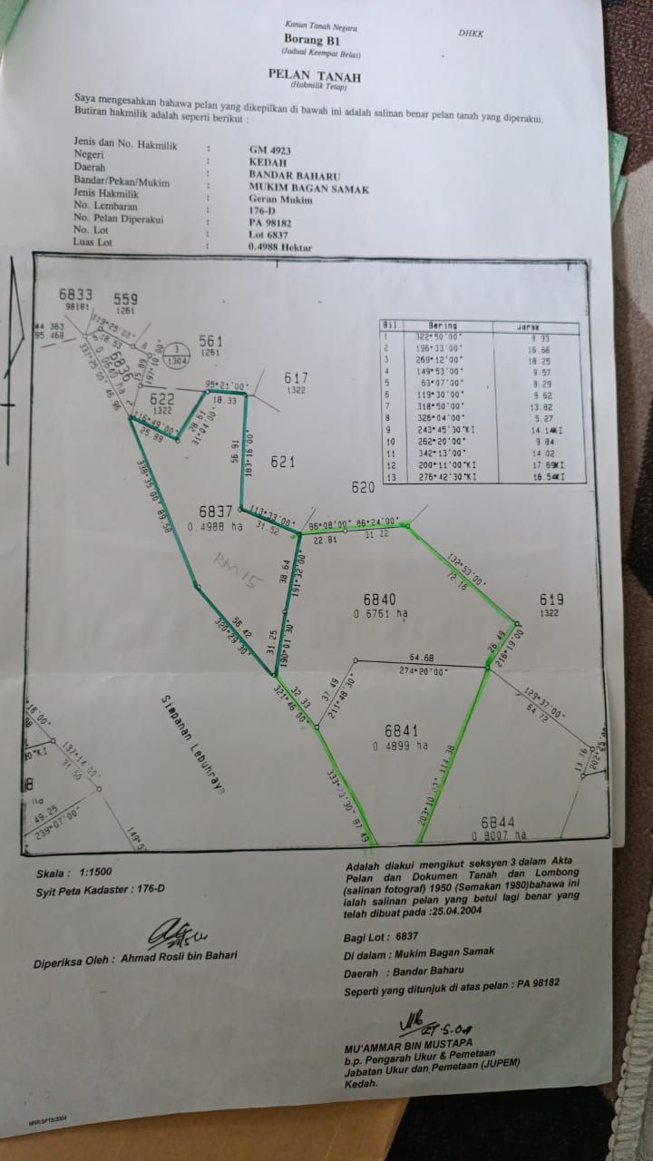 > Keluasan tanah: